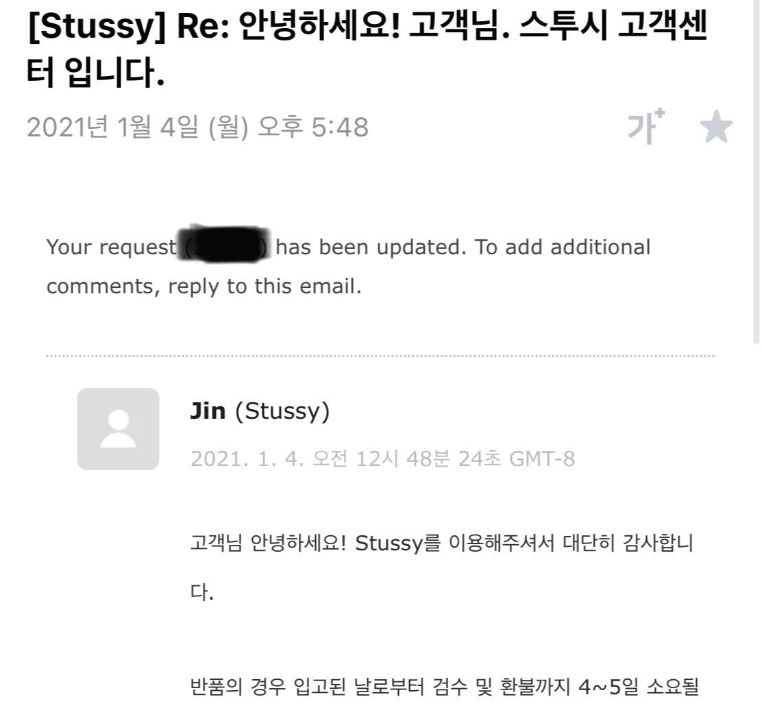 혹시, 스투시코리아에서 상품을 구매 후 반품처리를